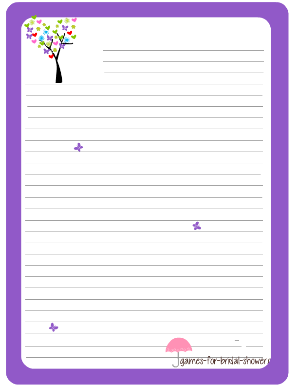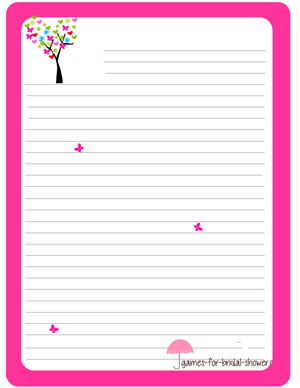 Click on the image shared above and a bigger image will open up. Right click on that image and save that to your computer. This beautiful stationery design is decorates with a tree full of hearts and it has a colorful and bright pink border. I am sure your guests will love playing games on it.