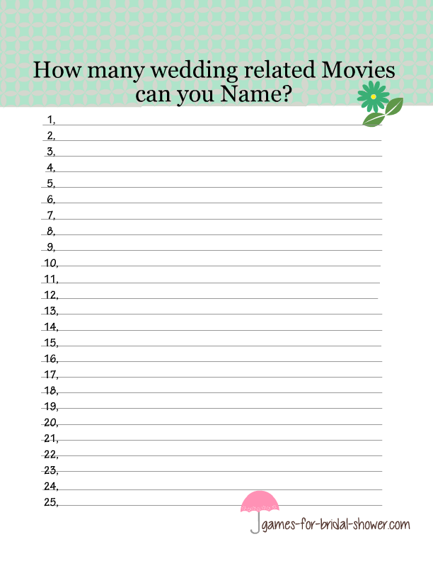 This is free printable worksheet to play how many wedding related movies can you name? game. This printable that I have shared above is in mint color. Just click on the thumbnail and a bigger image will open up, right click and save that.
